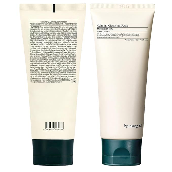 Pyunkang Yul Calming Cleansing Foam, Low pH Formula Facial Wash/Cleanser with Witch Hazel, AHA for oil control- Cica, Tea Tree Extract - Rapid Moisture replenishment 3.38 Fl.oz