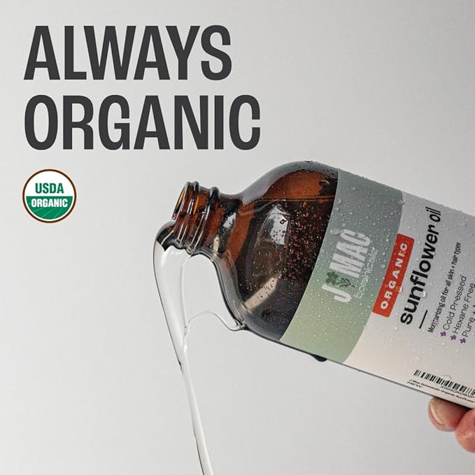 J MAC BOTANICALS Organic Sunflower Oil (16 oz Glass Bottle) USDA Organic Certified 100% Pure Carrier Oil, Moisturizing & Nourishing for Skin, Face, Hair