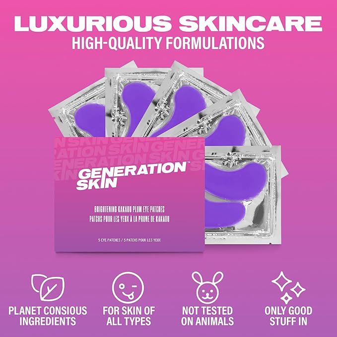 - Revitalize Your Eyes - Generation Skin’s eye patches are packed with moisture-boosting hyaluronic acid, ensuring your delicate under-eye area stays hydrated and radiant all day long.