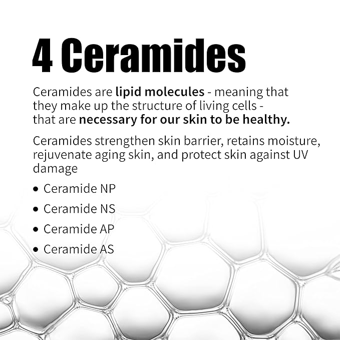 - ✔️ 4 TYPE OF CERAMIDES: Strengthen skin barrier, retains moisture, rejuvenating aging skin and protect skin against UV damages