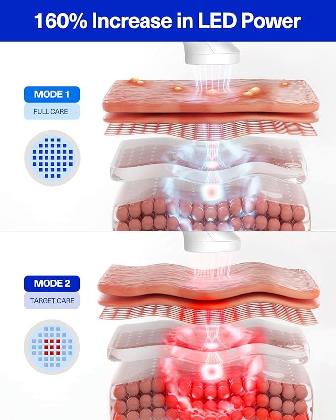 - 🔵 DUAL THERAPY MODES : Rejuvenating Mode has 625~850nm long red light beams to boost anti-aging properties, while Intensive Care Mode has 415nm long rays to improve concerns acne + prevent breakouts along with red + ir lights.
