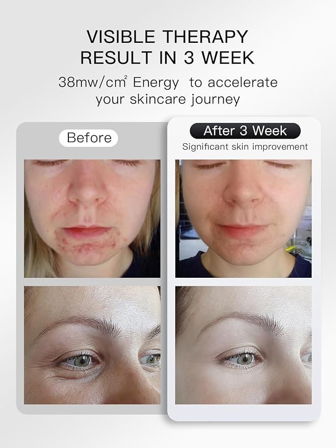 - 【Visible Results in Just 30 Days】Get ready for a led masks skincare transformation like never before. Our led mask therapy facial delivers visible results in as little as 30 days. Say goodbye to waiting months for improvements – within a month of consistent use, you will witness a noticeable change in your skin's appearance. Experience the power of accelerated results and achieve radiant, youthful skin in just 30 days with our LED Light Therapy Mask.