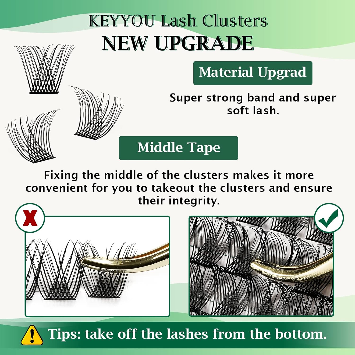- 【Soft&Comfortable】KEYYOU lash cluster are made of imported materials,the stem line is thinner and softer, the eyelash cluster are lighter and more comfortable to wear.96 clusters in one tray ,more cost-effective.