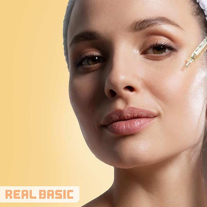 - Real Basic Serum for Brighter + Even Skin: A universal serum for the appearance of brighter, even looking skin. This intensive serum with 8% Ascorbic Acid, optimized with Ferulic Acid, and infused with Kombucha will help rejuvenate and energize dull skin, and will work hard to noticeably brighten and even out your skin’s appearance.