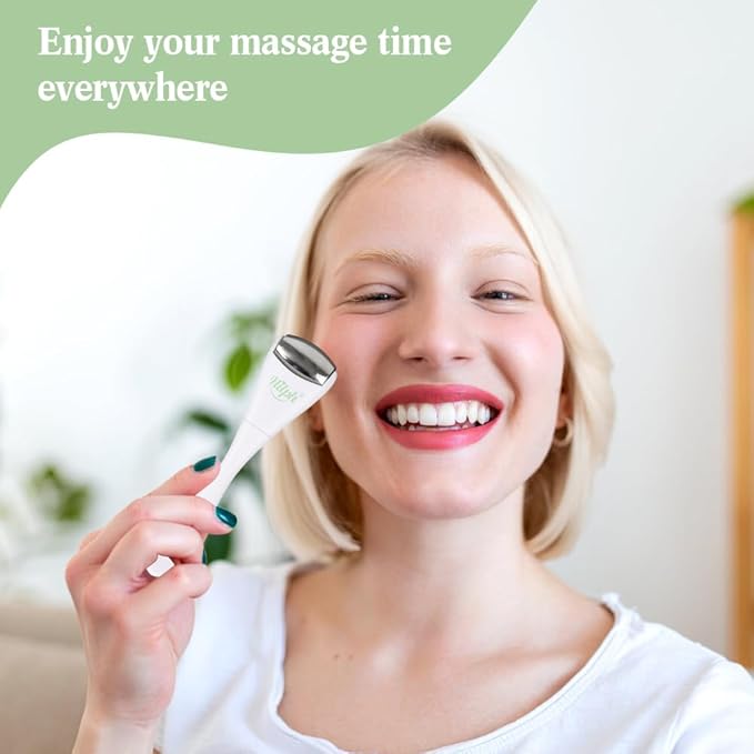 - Mini Massaging Tool: Small and light design, very comfortable to hold, ideal for massage the eyes and face, gently roller on your eye socket, under-eye, eye puffiness and temples, effectively relieve fatigue, alleviate sore muscles, tension headaches and swelling, promoting healthy blood circulation.