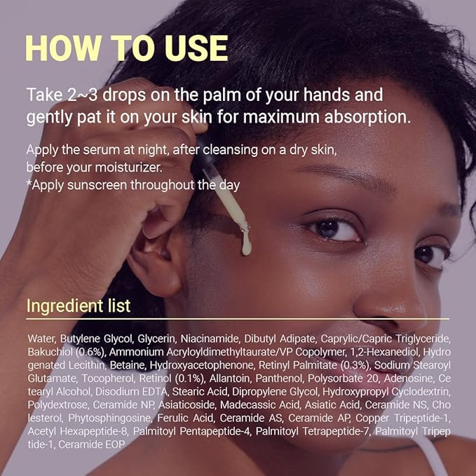 - Key ingredients: Retinol EX 1%, Provides intensive well-aging benefits by improving the appearance of the fine lines and wrinkles. (0.1% Retinol, 0.3% Retinyl palmitate, 0.6% Bakuchiol)
