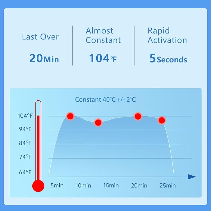 - Patented & Stable -- The eye soother masks gain patented ultra thin self-heating cell, last for about 25minutes with constant temperature of 40℃(104F), as well as gentle but dense steam. Warm and wet vapor helps better rejuvenate tired eyes, improve micro-circulation around your eyes, and promote absorption of eye creams, allowing you to enjoy face spa anytime and anywhere