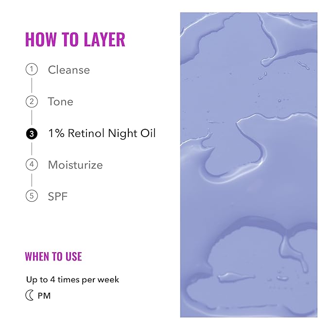 - PROMOTE CLEAR, YOUTHFUL SKIN: Embrace newfound confidence with this 1% Retinol Night Oil formulated with a combination of powerful ingredients designed to target fine lines, wrinkles, and other signs of aging.