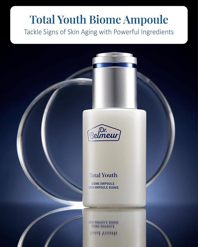 - DR. BELMEUR TOTAL YOUTH BIOME AMPOULE (35ml/1.2fl oz) - Elevate your skincare routine with this premium serum meticulously crafted to target a spectrum of aging signs. This powerhouse ampoule is tailored to combat wrinkles, enhance skin elasticity, deeply hydrate, and restore an even skin tone.