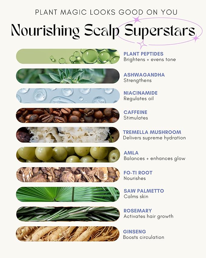 - ADAPTOGEN-INFUSED FORMULA – Ashwagandha and plant-based antioxidants combat environmental stressors for a healthy scalp environment.