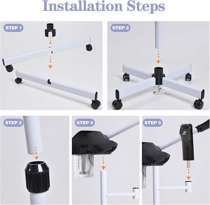 - 【Facial Steamer Professional】The ozone facial steamer comes with an upgraded atomizing cartridge, removable 500 ML water cup, 36-52 inch adjustable height, 360° rotating nozzle, and 360° rotating body.