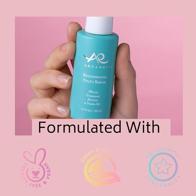 D'Arganette Regenerating Youth Serum Facial Oil Infused With Marula, Grapeseed, Almond & Jojoba Oil- Anti-Aging Moisturizer Face Oil For Dry Skin, Fine Lines & Wrinkles 1.7 oz- Made In USA