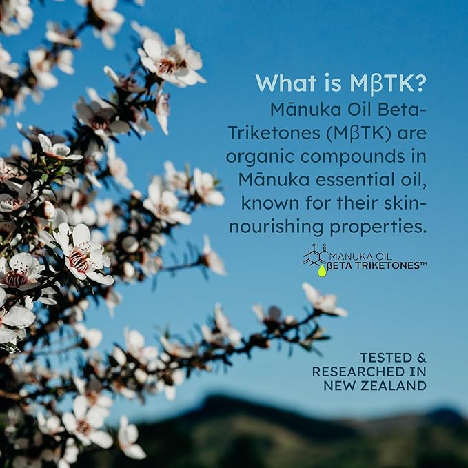 - Nature’s nectar: leaves derived from the manuka plant are steam-distilled to create manuka oil, nature’s skin care powerhouse; it fights blackheads, reduces oiliness, soothes irritation, & combats acne while outperforming tree oil by 15X
