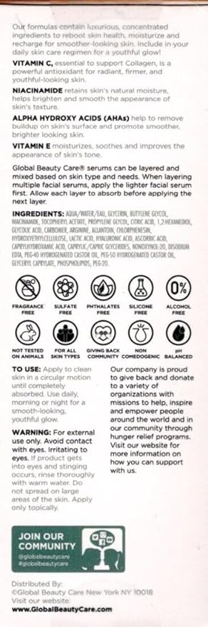- Experience the transformative power of Vitamin C and a carefully curated blend of ingredients with our Global Beauty Care Glowing Vitamin C 3-Piece Set. Your journey to glowing, healthy skin begins here. Upgrade your skincare routine with this comprehensive set and embrace a more radiant, youthful you. Order now and enjoy the benefits of Global Beauty Care's expertly crafted products.