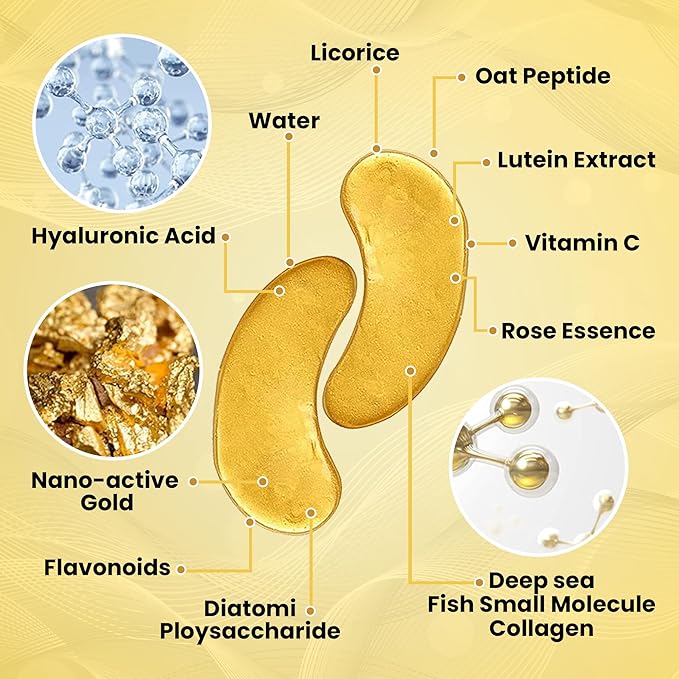 - 60 PAIRS UNDER EYE PATCHES - In this pack you get 60 pairs of our Golden Glow Eye Mask for a complete treatment that lasts, to prevent the formation of wrinkles and 24K nano gold with a protective effect helps prevent your skin from sagging.