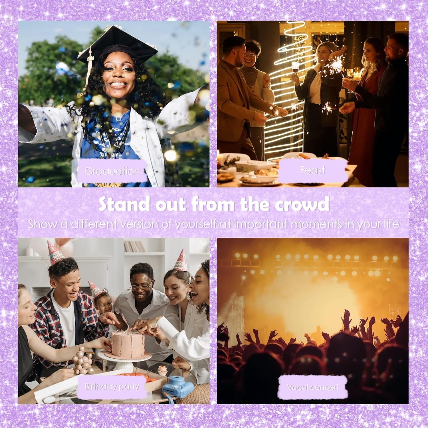 - Premium Quality: Our glitter body spray is crafted from high-quality materials. Experience the epitome with our ultra-thin, lightweight, and highly-reflective glitter hairspray, boasting a soft texture and exquisite color. Each glimmering piece of body glitter guarantees long-lasting radiance, while our hair glitter is elegantly housed in luxurious glass spray bottles, adding a touch of sophistication to your collection.