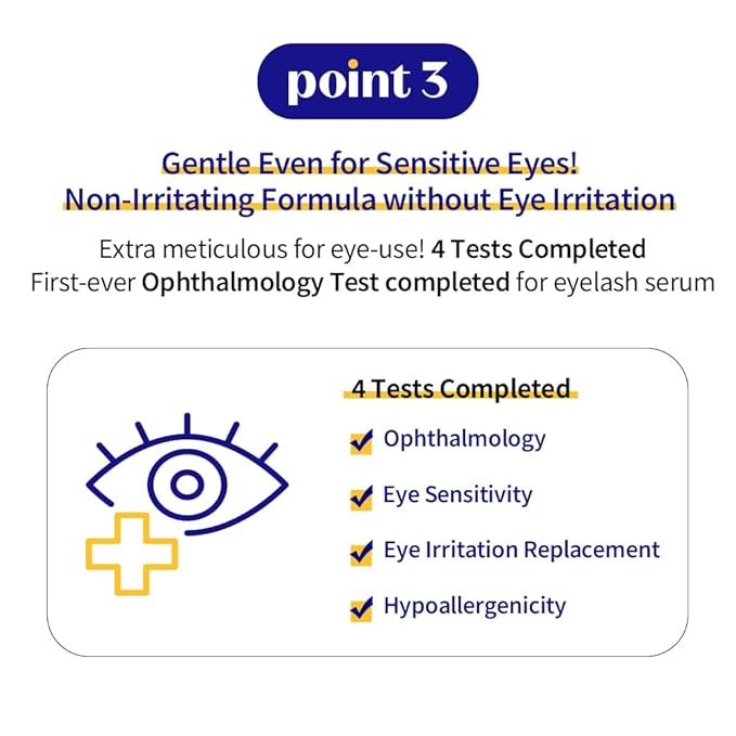 - Non-Irritating Formula without Eye Irritation: Extra meticulous for eye-use: 4 Tests Completed, First-ever Ophthalmology Test completed for eyelash serum.