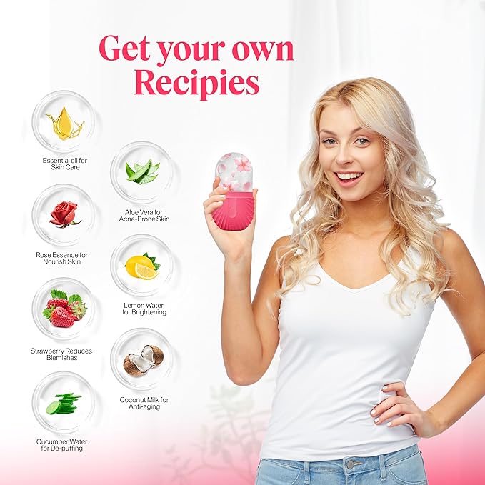 Ice Roller For Face, Fresh up Ice Cube Roller Massager For Face, Reduce puffiness and dark circles, Minimize pores and improve Skin texture (Pink, Ice Roller)