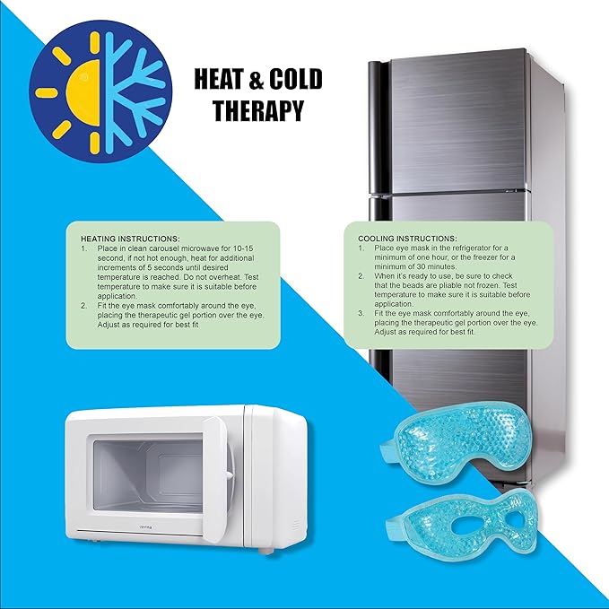 - Dual Functionality: Experience the best of both worlds with our Cold & Hot Eye Therapy Masks, designed to soothe and rejuvenate tired eyes, reduce puffiness, and alleviate headaches and eye stress.