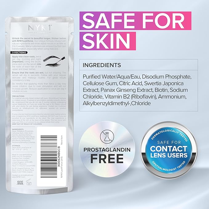 NYK1 CONCENTRATED Lash Serum For Eyelash Growth (3ml) LashForce Eyelash Serum To Grow Lashes Longer And Thicker - Lash Growth Serums For Easy Application And Long Lasting Results For Fuller Eyelashes