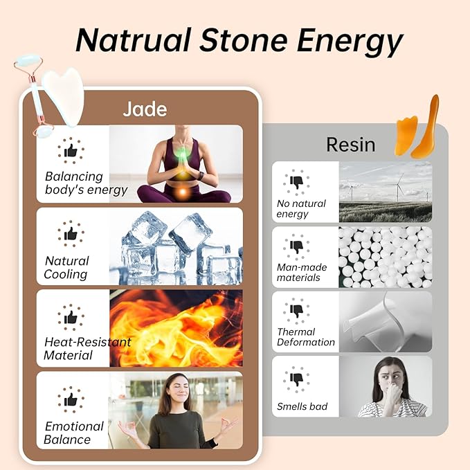 - 【Balancing Energy, Inside Out】Experience balanced minds and bodies with our real jade Gua Sha Scraping Massage Tool Set. Its magnetic energy calms minds, while the natural cooling effect after freezing can revitalize the skin again. Jade Gua Sha made of natural material is an ideal alternative to plastic guasha and ice rollers in skincare.