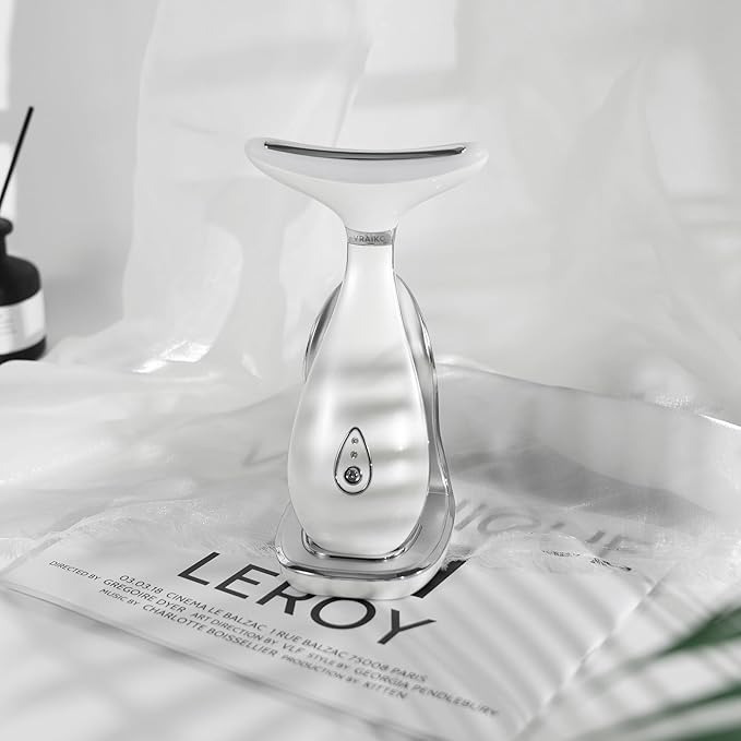 Lily Neck Face Massager, Skin Rejuvenation Beauty Massager, 3-in-1 at-Home Facial Spa Tool, Lifting, Toning and Tightening for a Radiant Appearance (Pearl White)