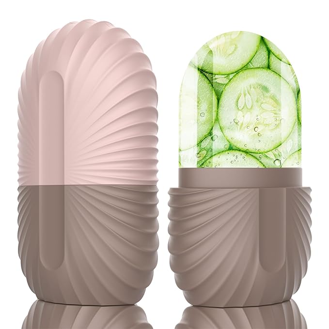 - 3. Easy to Use: pour into clean water from the top hole and then place the silicone ice face roller in the freezer for a few hours, and it's ready to go. The shell stripes ensures a secure grip, allowing you to effortlessly glide the roller across your face, and neck. Enjoy a spa-like experience in the comfort of your own home.