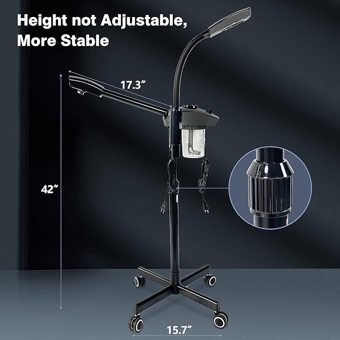 - [ Easy and Comfort to Use ]: The facial steamer for esthetician is equipped with four smooth-rolling wheels, it allows easy movement and positioning of the facial steamer anywhere in your home. The adjustable 3X magnifying lamp ensures convenient observation and precise skincare. It’s easy to install.