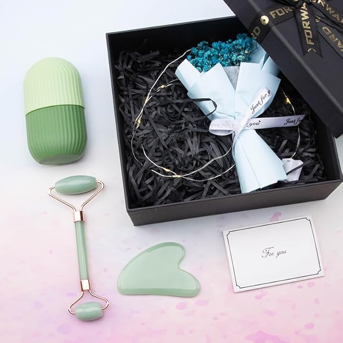 - 【Perfect Beauty Gift】1 Jade Roller & 1 gua sha stone ,1 Ice Face Mold,1 bunch of small dried flowers,1 small greeting card,2 small filament,in a beautifully packaged gift box. which makes them suitable for all genders and ages. Ideal beauty gift for Mother’s day, birthdays, anniversaries, and holidays.