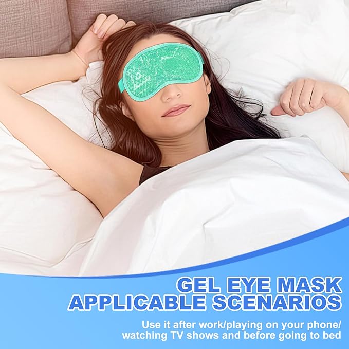 - đ©ăApplications and EffectsăCold hot gel eye mask can reduce dark circles,swollen eyes,puffy eyes,dark circles,eye bags,muscle aches,relieve stress,improve sleep and eye beauty care.The open-hole decompression design is suitable for use at work,for eye and before sleeping.