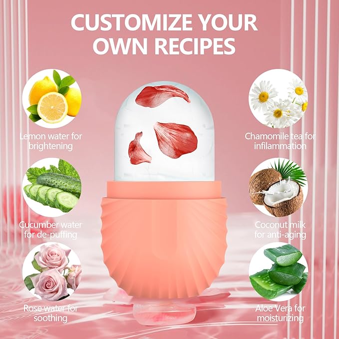 • Customize Preferences - Facial ice roller can enhance the skin care effect as per your creativity and customized formula according to your specific skin needs, such as lemonade for whitening, and coconut for improving skin. Even you can use a juicer to squeeze them into juice, then add water, essential oils, and roses to the ice tray.