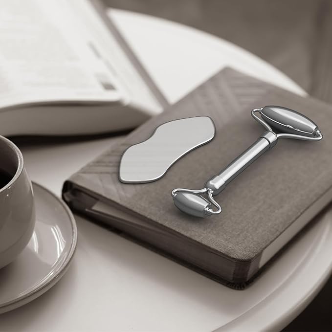 Stainless Steel Gua Sha & Face Rollers - Metal Roller for Eyes & Neck, Anti-Aging Facial Massage Tools, Gua Sha Facial Tool Kit (JGS-1)