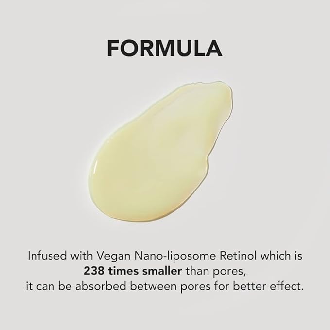 - 🤍 Advanced Active Vegan Ingredient Formula: Infused with Vegan Liposome Retinol, Bakuchiol, and Peptide to provide effective wrinkle care with less irritation. Vegan Liposome Retinol not only reduces the sign of aging but also improve the texture of your skin. Bakuchiol reduces the appearance of fine lines and helps soothe skin, and Peptide helps firming skin.