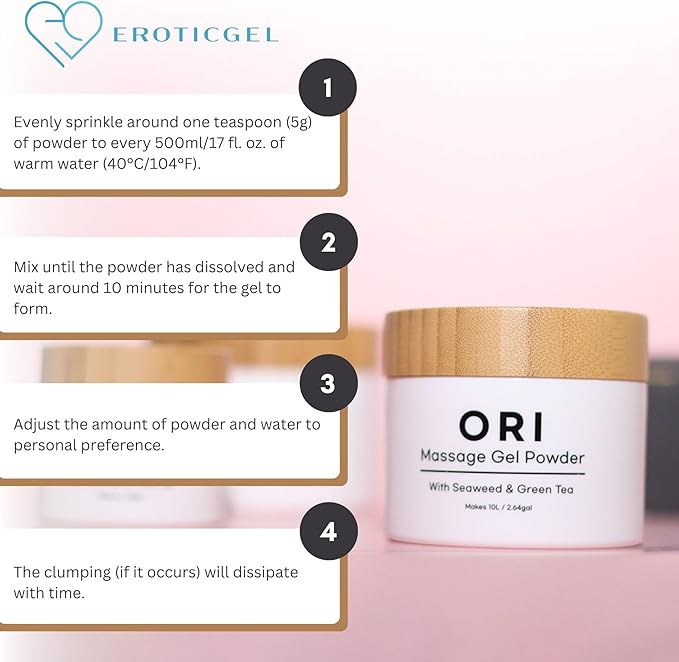 - Economical and Convenient: One teaspoon of powder makes 500ml (17 fl oz) of massage gel, yielding a total of 10L (2.64 gallons) per pack. Make only what you need and store the rest in the resealable sachet for later use.