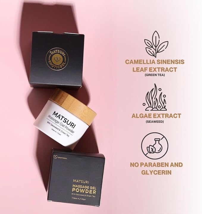 - Our Massage Gel Powder is made with natural ingredients like seaweed & green tea, offering a safe and nourishing massage experience. It’s free from parabens and glycerine for peace of mind.