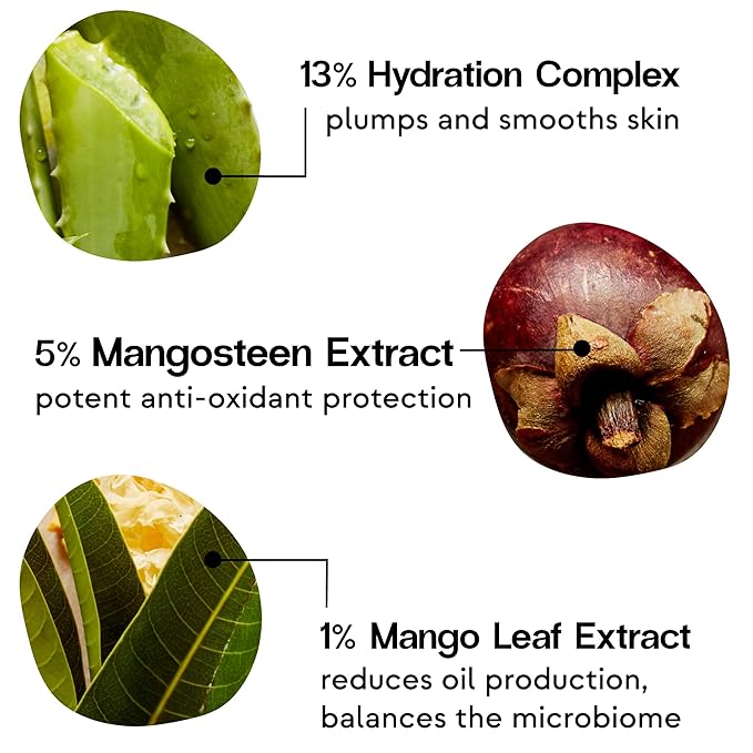 - INGREDIENT SPOTLIGHT: Hydralixir is formulated with a robust 13% Hydration Complex that works to hydrate and reduce redness. 5% Mangosteen extract, an antioxidant-rich super fruit which helps to reduce collagen, elastin, and hyaluronic acid-degrading enzymes in the skin. 1% Mango leaf extract which helps improve skin barrier function, reducing transepidermal water loss, while reducing oil production.