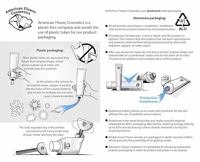 - 4.[AMERICAN FLOWER COSMETICS USES ALUMINUM TUBES]. They have a protective membrane. Upon first use, you break this membrane. This guarantees that no one has opened the tube before you and it is protected by very good barrier properties from ultraviolet light, oxygen, and water vapor.