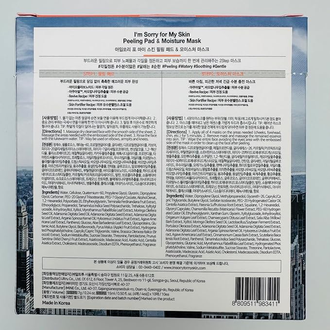 I'M SORRY FOR MY SKIN Peeling Pad & Moisture Mask, Korean Toner & Exfoliating Face Pads, Makeup Remover Cotton Rounds, Glass Skin Self Care Items, 2-Step Skin Care Travel Essentials Kit (Set of 10)