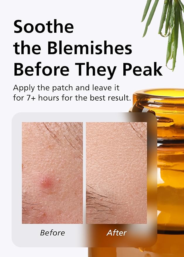 - Soothing Formulation with Tea Tree Leaf Oil: Enriched with a potent concentration of 10,000ppm tea tree leaf oil, the patch provides a soothing effect for troubled skin.