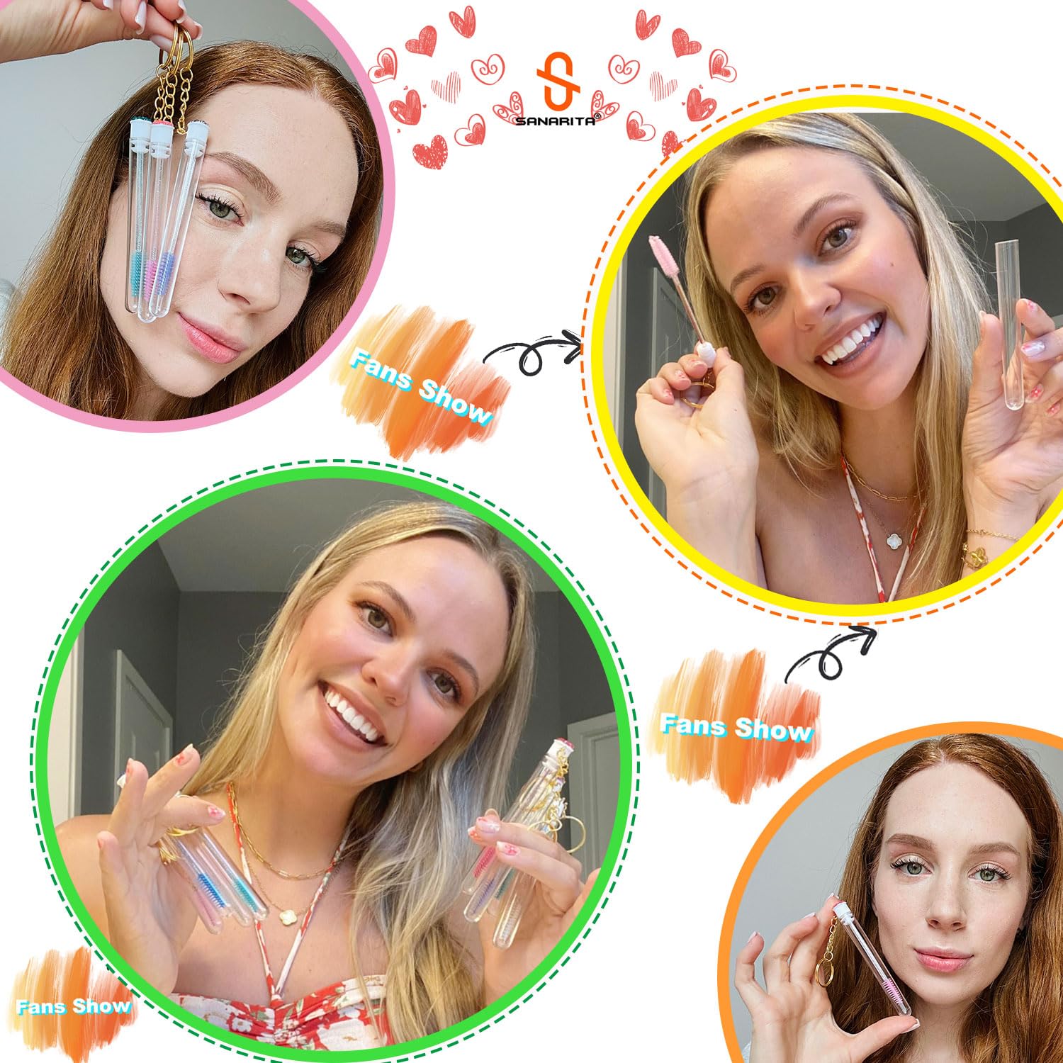 Upgrade 48 Pieces Disposable Mascara Wands Set,Include 24 Pcs Crystal Lash Spoolies Brush 24 Pcs Reusable Keychain Empty Eyelash Brush Tubes Christmas Holiday Gift Women Girls