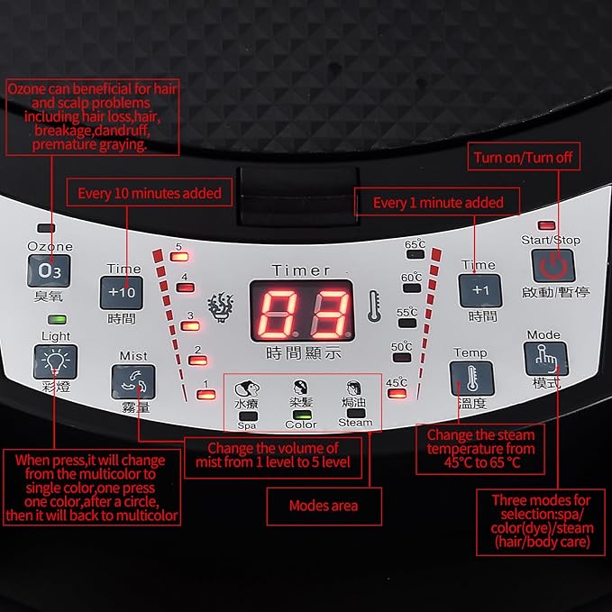 Professional Hair Salon Steamer Ozone Micro Mist Hair Steam Mister Hooded 7 Color Light with UV Protect Coat for Natural Hair Caring