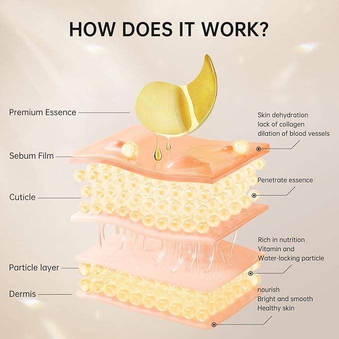 - Storage Suggestions: You will receive a jar of 60 under eye masks, which contains sufficient essence. You need to tighten the bottle cap when not in use to prevent the essence from drying out. And store it in a cool, dry place away from direct sunlight and high temperature environments. It is recommended to keep it out of the reach of children.
