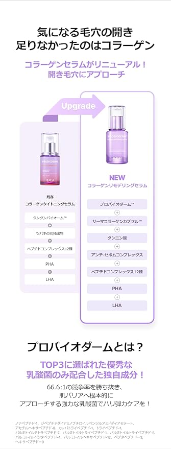 - Achieve Remarkable Pore Tightening & Firming Results in Just 5 Days: Our Probioderm Collagen Remodeling Serum is expertly formulated to deliver rapid and visible results, creating a "corset-like" tightening effect on your pores. By addressing both horizontal and vertical pores, this serum reduces their size and area, dramatically improving skin smoothness, texture, and overall firmness in as little as five days.