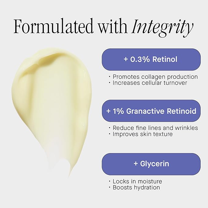 - CLINICALLY TESTED INGREDIENTS - Our Dual Retinol Renew Cream features a potent combination of 0.3% encapsulated retinol and 1% granactive retinoid, crafted with clinically tested and dermatologist-approved ingredients, all at an affordable price.