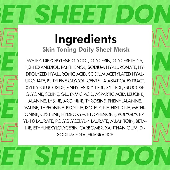 - YOUR SKIN’S DAILY BESTIE. Say goodbye to dull routines and hello to skincare that's as fun as it is effective! Get Sheet Done Hydrating Sheet Mask delivers a burst of moisture, paired with a dash of humor. Fortified with Centella Asiatica and Amino Acids, it refreshes and revitalizes skin, ideal for the busy, bold, and pun lovers.