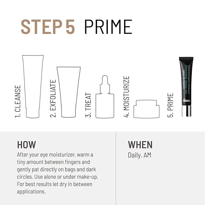 - EYE DE-PUFFING GEL - No More Baggage transforms from cream to gel when warmed between your fingers. It's fragrance-free, can be used with or without makeup, and is formulated to absorb quickly into the skin, even over a moisturizer.