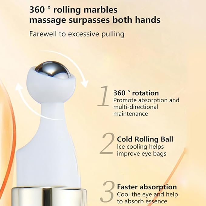 - 360° rotation Promote absorption andmulti-directionalmaintenance Cold Rolling Ball lce cooling helpsimprove eye bags Faster absorption Cool the eye and helpto absorb essence