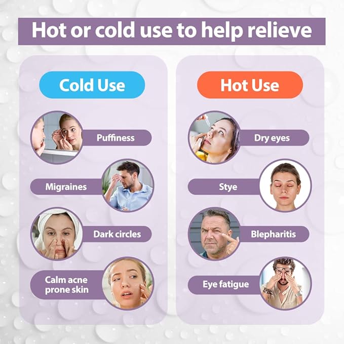 - ✿Adjustable & Comfortable - With an adjustable head strap, our hot and cold eye mask is sure to fit perfectly on almost all head sizes. Designed for long hours of comfortable wear as you relax and rest, and a secure fastener ensures the mask remains secure on your face even as you toss and turn in bed. Eye mask comes with resealable bag helps for healthful storage and prolong the usage lifetime or isolate the fridge odor. Hand wash, rinse & lay flat to dry.