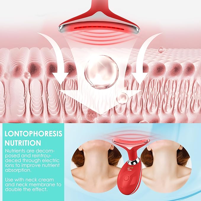 Red-Light-Therapy-for-Face and Neck, Face 𝖲 culpting Wand Facial Massager with 7 Color (Red)