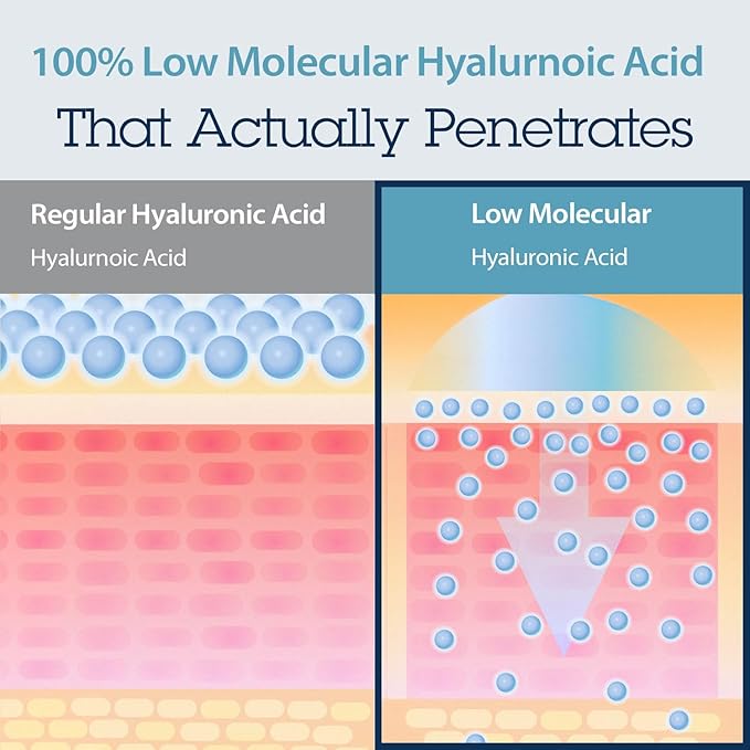 - π§ 2% Pure Hyaluronic Acid β Delivers deep hydration using only low molecular weight hyaluronic acid, clinically proven to penetrate deeper for visible plumping and moisture barrier support.